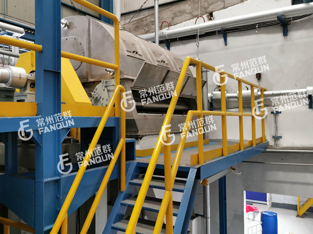 3.干燥時間短。物料的干燥周期一般只有10-15秒,適合于熱敏性物料。若將滾筒干燥機設置在真空器中,則可在減壓條件下運行。