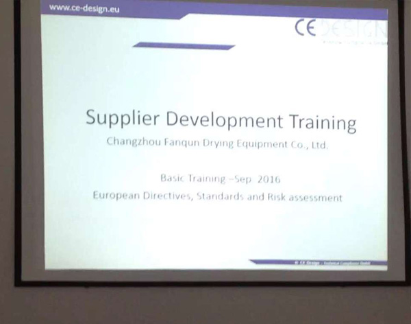 2016年9月2日至9月8日,我公司專門聘請德國專家為公司員工進行歐洲機械指令、CE(CE certification)等安全方面的培訓。我公司組織技術、生產(chǎn)、質(zhì)檢、工藝、售后等部門認真聽取課程內(nèi)容,各部門結合自身情況積極互動,取得了良好的效果。經(jīng)過本次培訓,我公司各環(huán)節(jié)的行為將更加規(guī)范化、標準化,未來將會為客戶提供更好的服務。