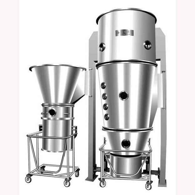 3、給料,使物料均勻的布滿流化床板,提高進風溫度至設計溫度(75~80℃)。試車中看給料是否均勻,連續,進、出料口是否有冷風吸入或熱風排出。檢測介質溫度,物料溫度是否在允許范圍內,觀察物料的流化狀態是否良好,如以上均正常,則試車符合要求。